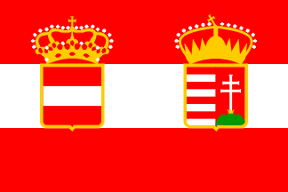 largest Austro-Hungarian flag in the photo. The flag seems to be a horizontal tricolour. I