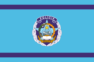 The flag of the National Police (Policia Nacional) of Angola is divided horizontally azure blue,