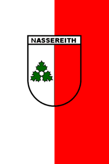 | Description of arms (German): | Ein von Silber und Rot gespaltener Schild, im silbernen Feld drei grüne, im Dreipaß gestellte Ahornblätter. [1] |