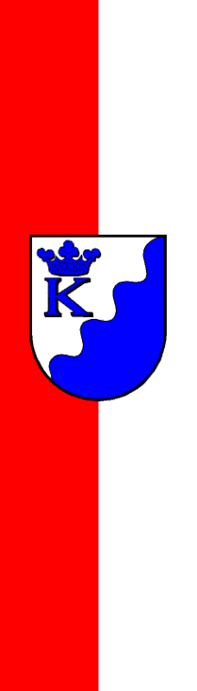 | Description of arms (German): | Durch schräglinken Wellenschnitt von Silber über Blau geteilt und darin oben die blaue Initiale "K", überhöht von einer blauen Krone. [1] |