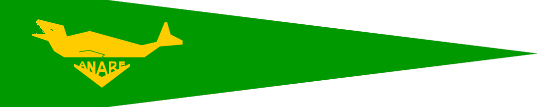 The flag is a pennant shape and is green in colour with a rampant leopard seal over the letters ANARE, which is positioned on an upturned boomerang shaped flash. It is flown at all Antarctic stations in occupancy and at home base offices in Australia.