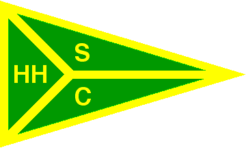 The burgee of the HHSC, as shown on the YACHTe's portal, is green with a yellow border and a yellow, Y-shaped division, and the yellow letters "HH", "S" and "C" in the respective quarters.