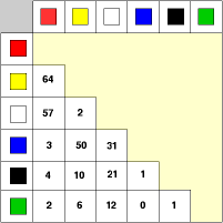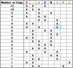 Two-colour combinations used on Belgium municipal flags - Image by Ivan Sache, after Gunnar Staack's data, 4 May 2002