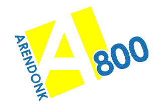 accompanied by the name "ARENDONK" in blue, at left, and the figure "800", also in blue, at right, the "8" placed in front of the diamond and fimbriated white.