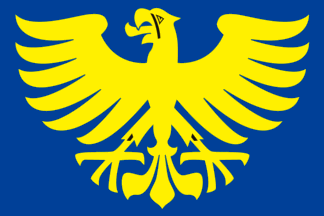 The municipal flag of Arendonk is blue with a yellow eagle spreading