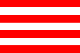 The flag of Hulshout is horizontally divided in seven horizontal stripes in turn red and white.