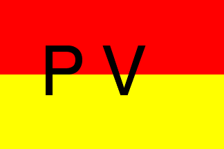 Jan Mertens, 18 March 2006The house flag of the company is shown on the aforementioned share, as horizontally divided into two (recalling the flag of Ostende, with dark-coloured letters PV in the centre. On the Flags & Funnels website by Heinrich Fischbach (no longer online) is shown what appears to be the flag on the share, that is horizontally divided red-yellow with black letters.