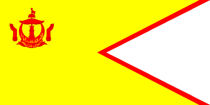 Yellow swallowtailed flag with a thin red border to the swallowtail cut. Arms on upper hoist. Source: an article by Michel Lupant in Gaceta de Banderas no. 69, May 2001. Actually Michel Lupant translates this as "Flag of sons and daughters of the Sultan who are not high caste ([not] legitimate)". However, puteri(a) means "prince(ss)" according to my sources, so may be the best translation would be "princes(ses) of the blood".