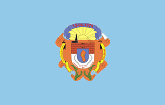 A light blue flag, bearing the municipal arms in the centre.