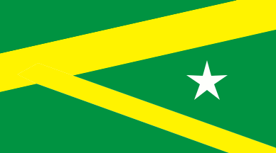 A green flag with two yellow diagonal bands and a white star.