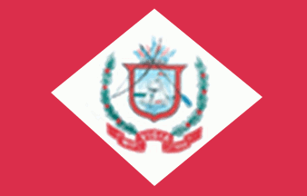 A red flag with a central white diamond bearing municipal arms.