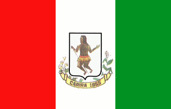 A vertical tricolour, red-white-green, with the municipal coat of arms in the centre.