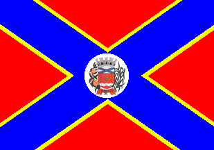 The flag is red with a blue saltire bordered in yellow. In the middle