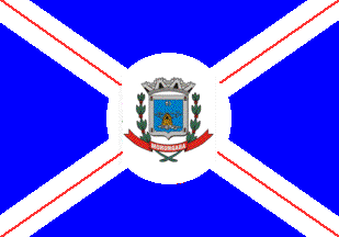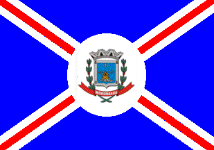 The flag of Morungaba is blue with a white-red-white saltire. In the middle of the flag is placed a white disk charged with the municipal coat of arms. The saltire is shown on some flags with the three stripes of equal width, while on other flags the central, red stripe is extremely thin.