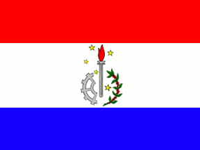 The emblem is made of a silver torch with a dark red flame, surrounded in base dexter by a half cogwheel argent and sinister by a branch of coffee, and by a yellow Southern Cross. Red dark is a symbol of knowledge. Yellow is a symbol of nobleness, magnanimity, and integration of all Brazilians in a common country.