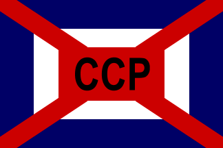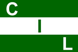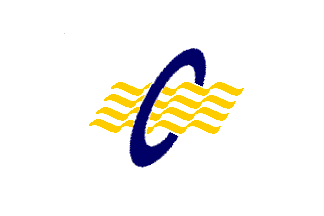 horizontal triband, with the company initials: C, in white, in upper hoist,