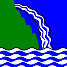Azure a Mountain-side Vert issuant from dexter a spring of water filling the base.