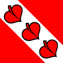Gules on a Bend Argent three Linden Leaves pointing to base sinister.
