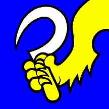 Azure a Lion Paw issuant from chief sinister holding a Sickle Argent handled of the second.