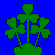 Azure, three Trefoils slipped issuant from Coupeaux of the same.