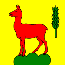Or a Doe Gules stantant on Coupeaux Vert and a Ear of Wheat of the last palewise in chief sinister.