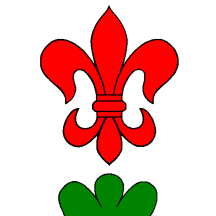 Argent, a Fleur-de-lis Gules and Coupeaux vert.