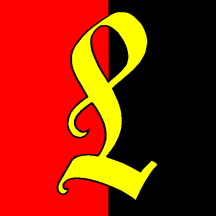Per pale Gules and Sable overall a letter L Or.