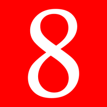 Gules, a Number 8 argent.