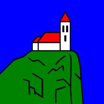 The flag of Calonico alludes to the position of St. Martin's church ("chiesa di San Martino") located on the brink of a rock.