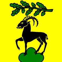 Or a he-gaor sable passant on coupeaux vert and in chief an oak branch vert fesswise.