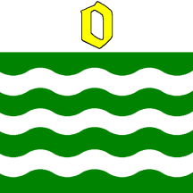 Vert, three Bars wavy Argent, in Chief Argent a capital O Or.