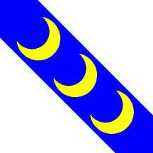Argent on a Bend Azure three crescents in bend Or.