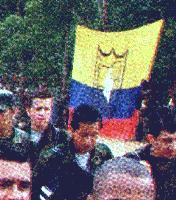 of a banner (a square with the Colombian tricolour plus the