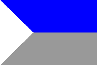 is horizontally divided blue-gray with a white triangle placed along the hoist.