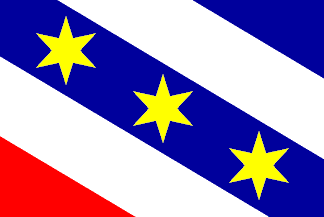 blue diagonal bar stands for the river Vltava (Moldau), but that's the