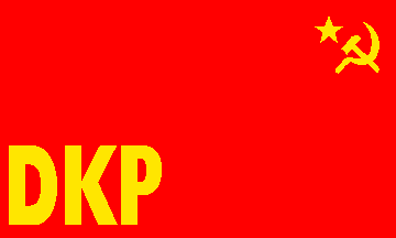 The DKP also uses a red flag with hammer, sickle and red star, with yellow inscription 'DKP' in the lower fly. The above image shows the reverse (hoist on the right-hand side), as I do not know exactly how the obverse looks like.