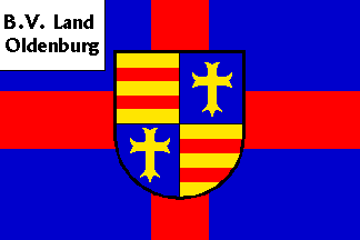 On a regional level one should mention the flag of the Bezirksverband Oldenburg (district organization Oldenburg), that consisted of the former Oldenburg state flag (red cross on blue) with the arms in the center and a white canton bearing the inscription B.V. Land Oldenburg.