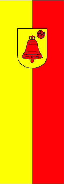It is a yellow - red vertical bicolour. The coat of arms is shifted to the top.