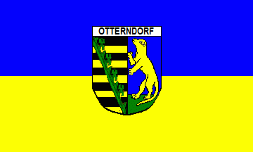 According to source Otterndorf gained city rights around 1400 from duke Erich of Saxe-Lauenburg. The oldest seals date from the same time and are already showing the combination given above. The otter is canting. The composition has not changed since then, although the otter has also often been placed into the dexter half of the shield.