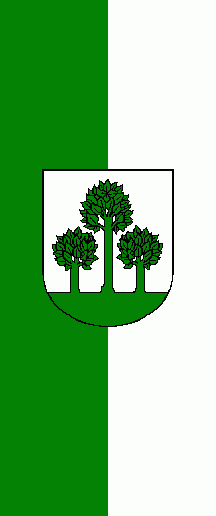 It is a green - white vertical bicolour. The coat of arms is shifted to the top.