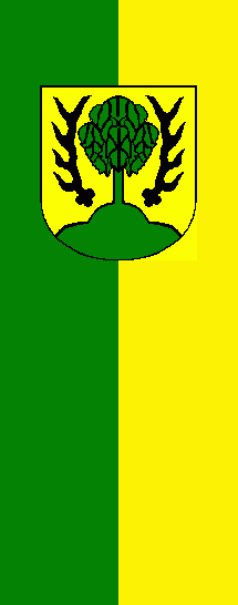 It is a green - yellow vertical bicolour.The coat of arms is shifted to the top.