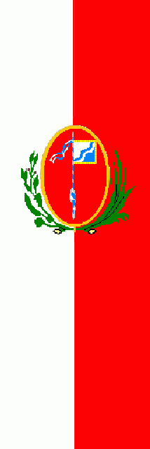It is a white - red vertical bicolour. The coat of arms is slightly shifted to the top.