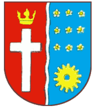 cross argent surmounted by a crown or, 2. Azure nine flowers or, 3 + 3