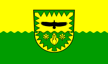 The flag was approved by minister of interior of Mecklenburg-Westpomerania on 26 March 2001, published in the roll of arms of Mecklenburg-Westpomerania as no. 0224, the coat of arms on 19 September 2000.