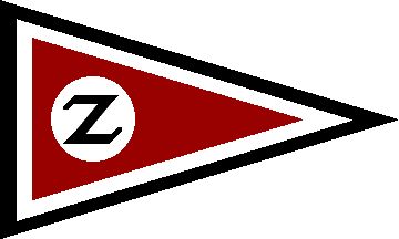 Red pennant with a white-black border, a white disc charged with a black "Z" letter. Lake Zeuthen is located in the extreme southeast of former East Berlin (Köpenick district). Zeuthen is located on the west bank of the lake and seems to be in Brandenburg.