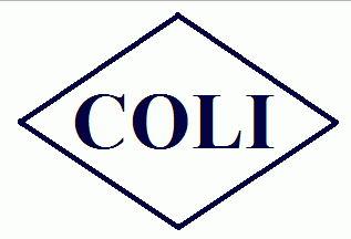 Description of flag of COLI: It is a plain white flag with a whitelozenge fimbriated dark blue and containing an inscription of serifed capitalsof the same colour: “COLI”.