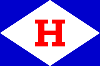The flag is blue with a white lozenge that touches the edges and a red