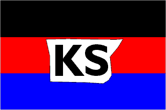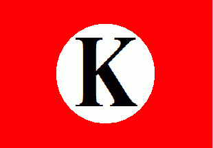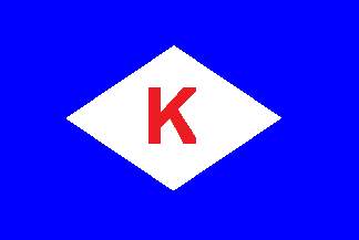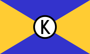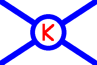 with a blue saltire, charged in the middle with a red K in a blue ring.