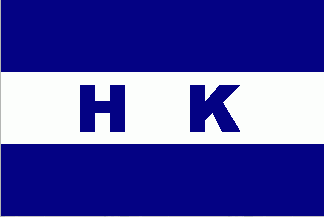 dark blue horizontal triband with dark blue capitals ?HK? in the middle