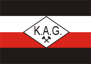 bearing black initials "K.A.G." above miner's hammers, also black. The